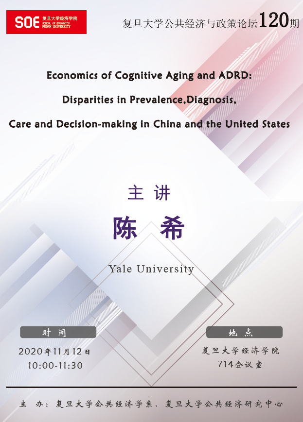 题目:Economics of Cognitive Aging and ADRD: Disparities in Prevalence, Diagnosis, Care and Decision-making in China and the United States