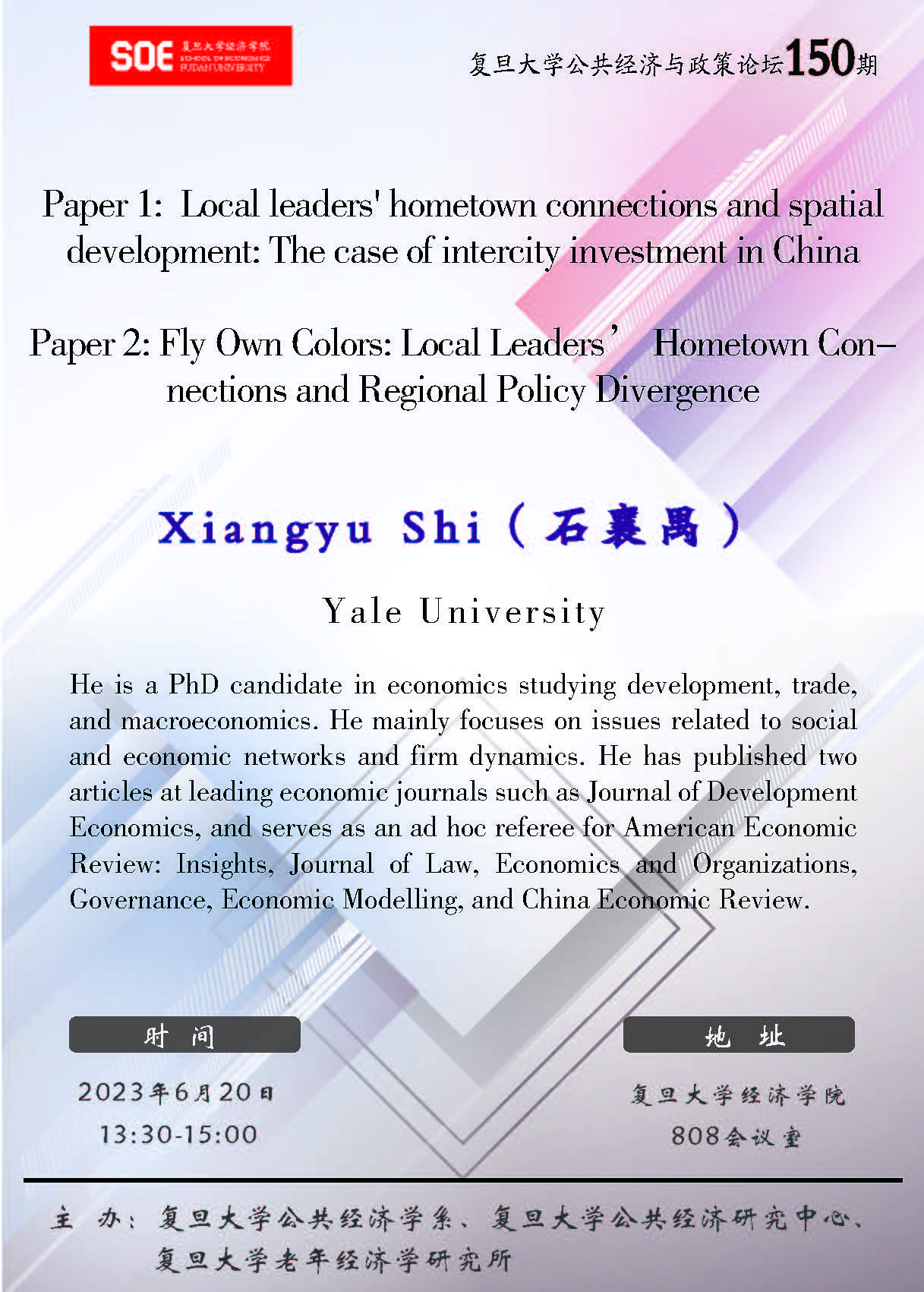 上一篇:无码流出 公共经济与政策论坛151期:Germs in the Family: The Short- and Long-Term Consequences of Intra-Household Disease Spread