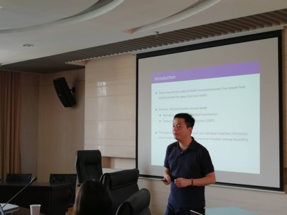 黄老师首先指出经典的健康保险理论模型当中,通常假设人们是充分了解自己的健康状况的,但实际上,人们认知中的健康与人们实际健康状况不是等同的。黄老师在自己的文章中即分析了老年人对于自己健康状况的不完全认知是如何影响他们购买健康保险的行为的。他在自己的文章中提及了自己的发现:不论在中国还是美国,老年人都往往对自己不良的健康状况是无意识的。为了发现老年人的这种无意识与健康保险参保行为之间的关系,黄老师选取了两种数据来进行实证分析:美国的NHANES数据和中国CHARLS数据,并把NHANES中的身高缩减数据作为健康状况的衡量标准,发现人们往往会低估自己身高的缩减程度,这可以作为人们对自身健康状况认知的一种偏差。在中国的数据中,黄老师则采用了高血压数据来衡量健康状况,并后续考察了人们被告知自己患有高血压之后的反应。
