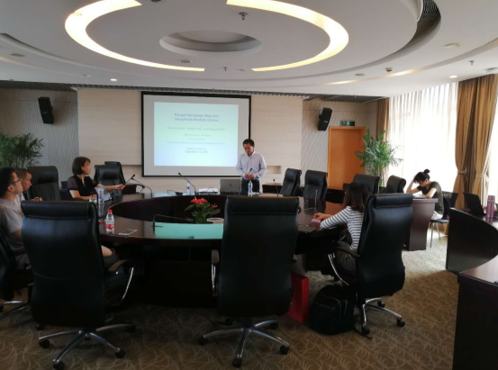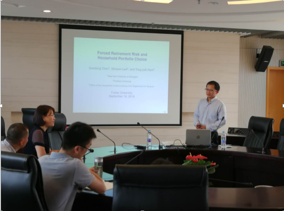 泛海楼808会议室举行。来自纽约大学上海分校的陈国栋老师作了题为“Forced Retirement Risk and Household Portfolio Choice”的讲座,探讨了强制退休带来的风险以及家庭投资的资产组合选择。报告由公共经济学系封进老师主持。