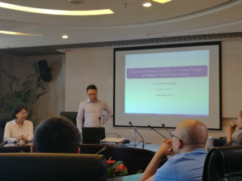 泛海楼808会议室举行。清华大学经济管理学院经济系陆毅教授应邀做了题为“Training and Science: The Effect of Training Program on STEM Career Choices”的学术报告,主要聚焦于人才培养计划(中国的“珠峰计划”)对于学生在STEM领域的职业选择的影响。报告由公共经济系系主任封进老师主持。
