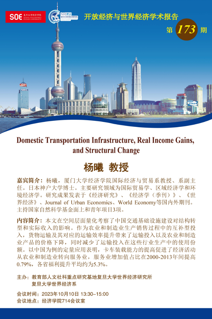 主题:Domestic Transportation Infrastructure, Real Income Gains, and Structural Change