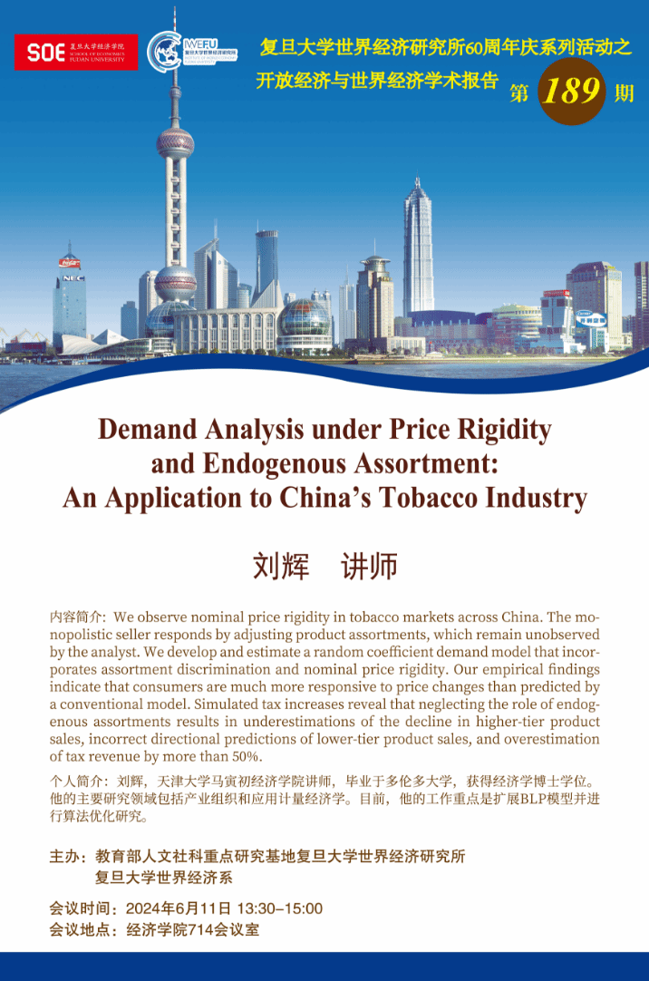 主题:Demand Analysis under Price Rigidity and Endogenous Assortment: An Application to China’s Tobacco Industry