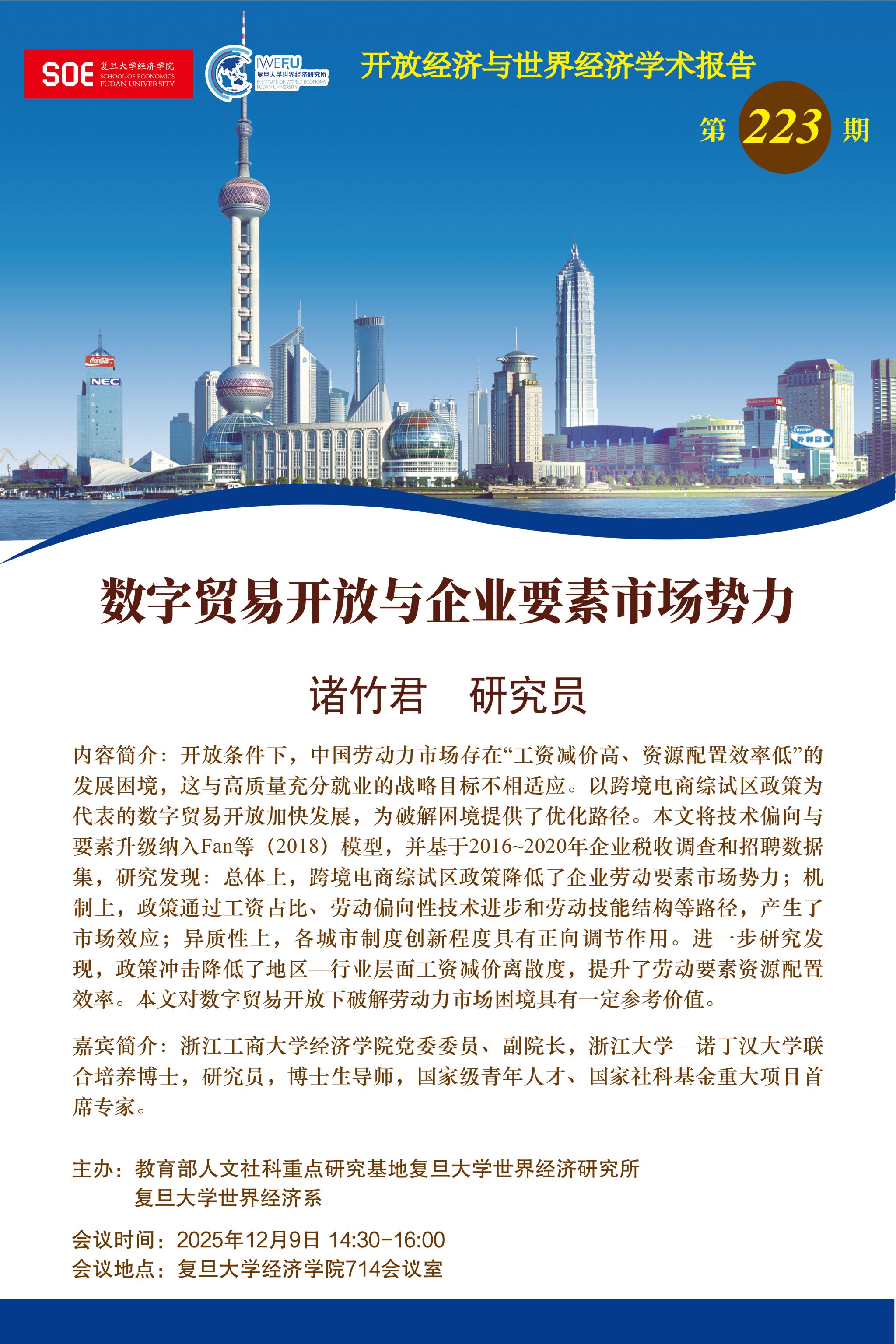 无码流出 世界经济研究所开放经济与世界经济学术报告第223期:数字贸易开放与企业要素市场势力
