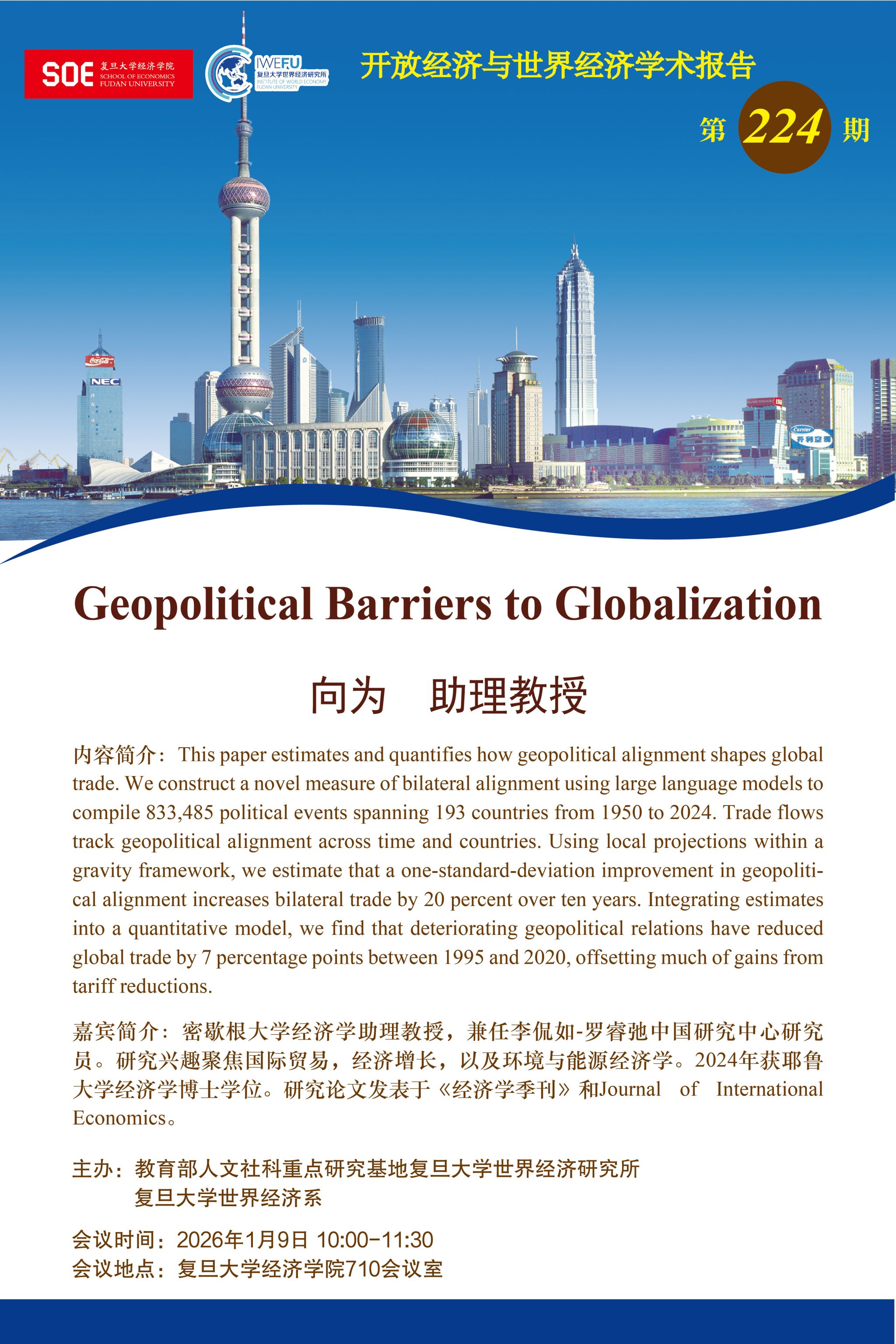 无码流出 世界经济研究所开放经济与世界经济学术报告第224期:Geopolitical Barriers to Globalization