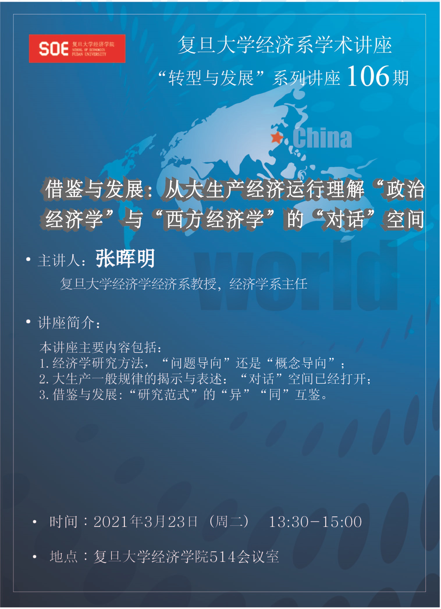 转型与发展经济系列讲座第106期:借鉴与发展:从大生产经济运行理解“政治经济学”与“西方经济学”的“对话”空间