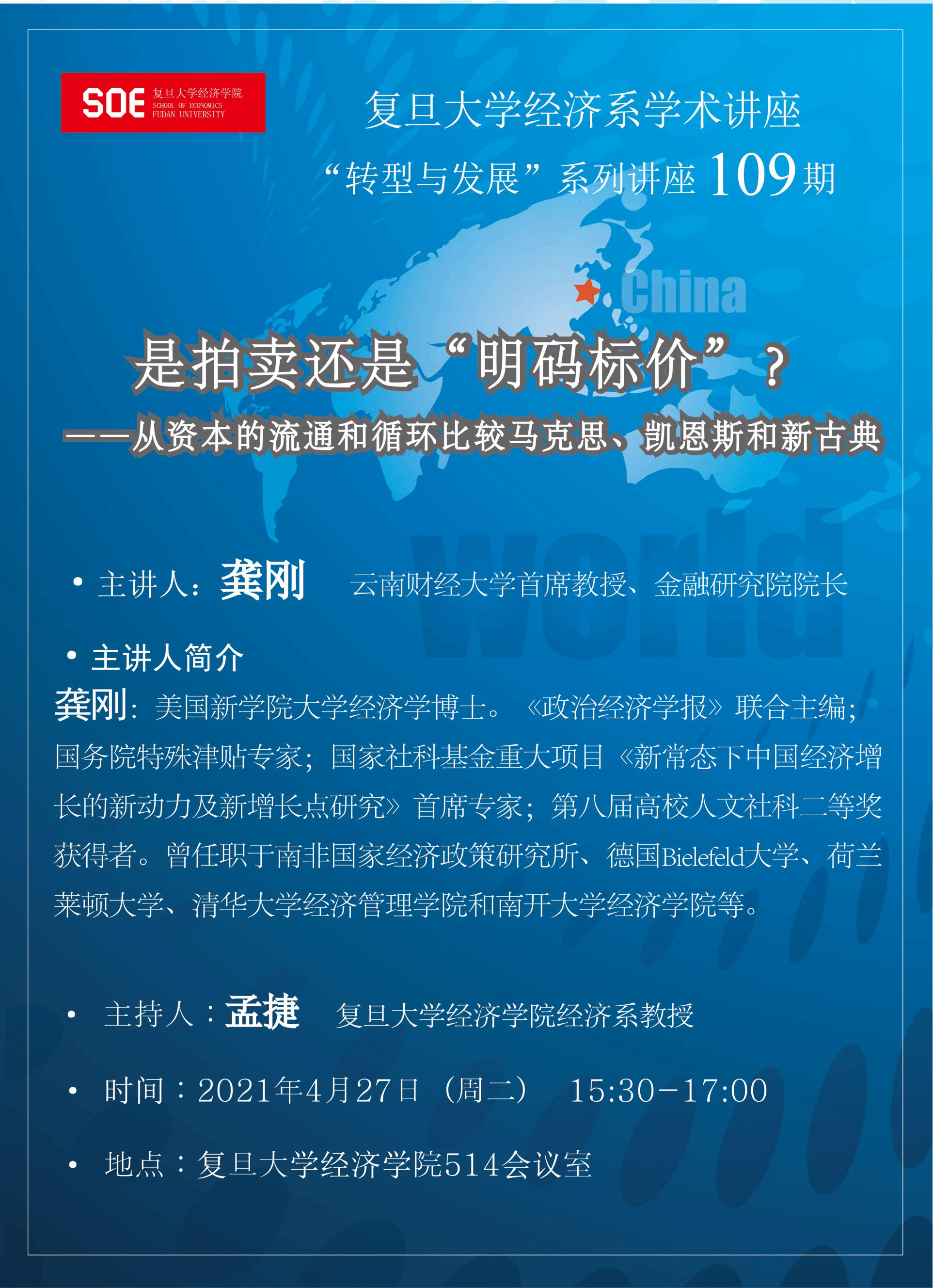转型与发展经济系列讲座第109期:是拍卖还是“明码标价”?——从资本的流通和循环比较马克思、恩格斯和新古典
