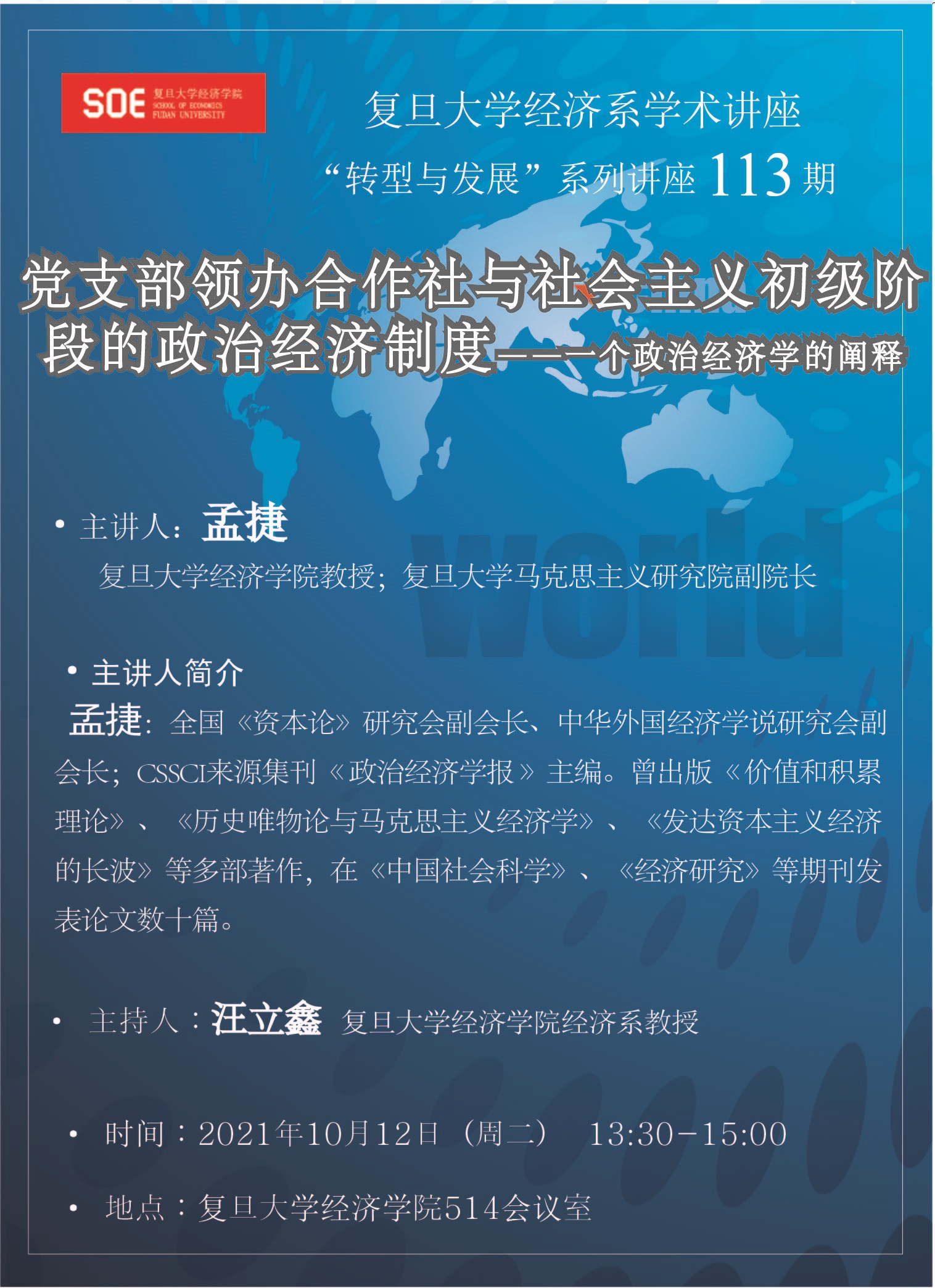 转型与发展经济系列讲座第113期:党支部领办合作社与社会主义初级阶段的政治经济制度——一个政治经济学的阐释