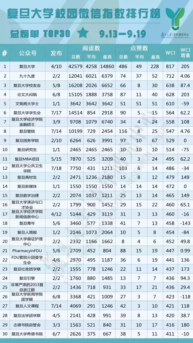 过去的一周里,复旦校园里,微信公众号哪家强?无码流出