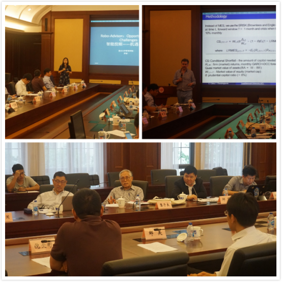 管理学院副教授罗妍紧接着作了题为“智能投顾——机遇与挑战“的主题演讲,她认为智能投顾具备高频、低成本、全方位覆盖的财富管理服务等优势,并分享了智能投顾在国外的研究成果与国内的业界发展脉络,在演讲的末尾还介绍了基于人工智能的基金存在无法窥测人工智能的投资机制等挑战。最后一位演讲者是来自拉夫堡大学的Giovanni Calice教授,他对论文“Have Systemically Important Financial Institutions (SIFIs) Gotten Riskier?”进行了分享,主要论证了金融危机后一段时期内金融机构存在的高风险,其中银行和保险行业呈现出显著的风险上升趋势,论文认为对于金融机构的国家监管和国际监管都十分必要。