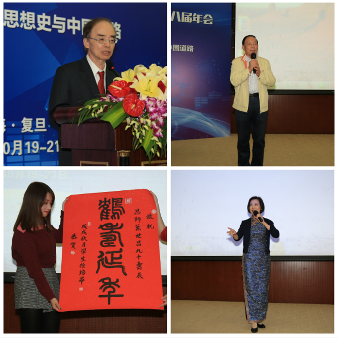 叶世昌先生学术思想研讨座谈会是本届年会的一个环节。叶世昌先生是中国济思想史创立者之一,现已90岁高龄,在经济思想领域和货币理论领域有重要贡献。2017年以88岁高龄完成了《中国近代思想史(上下册)》,2018年他因在中国金融史领域的研究成果荣获中国金融学科终身成就奖,该奖项旨在奖励对中国金融学科做出建设卓越贡献长期从事金融学科较与科研工作的优秀学者,是目前国内含金量最高的奖项之一。座谈会上学界大师和叶先生的学生们分别回忆介绍了叶老师的生平和成就,并向叶老师呈送字画对联,献上京剧表演,将活动推向了高潮。