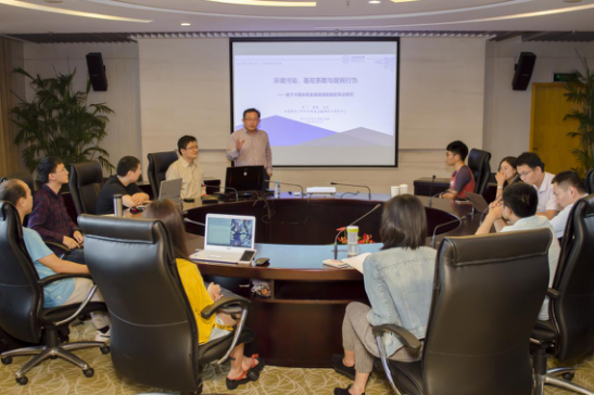 副院长陈诗一教授主持,西南财经大学发展研究院副院长李丁副教授应邀作了题为“环境污染、基尼系数与居民行为:基于中国家庭调查数据的研究”的讲座。