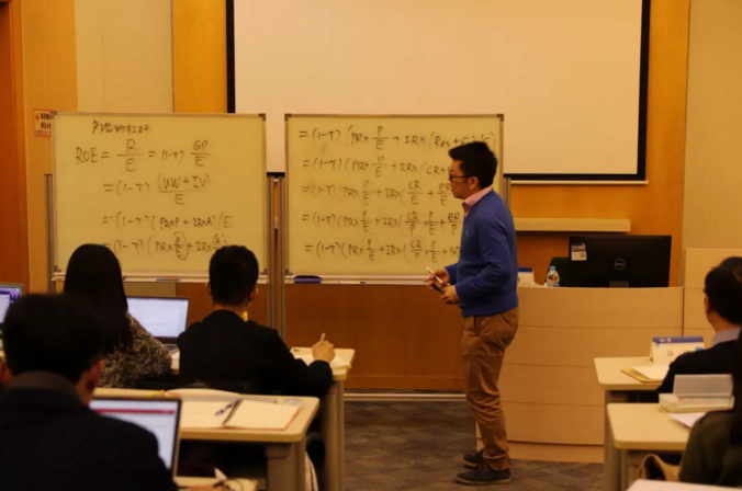 陈先生的讲座别开生面,他用传统的黑板板书,首先介绍了保险公司ROE模型公式: