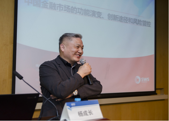 优秀校友、申万宏源证券研究所首席经济学家杨成长先生应邀在大会上发表了精彩的实务报告,报告的主题是“中国金融市场的功能演变、创新途径和风险管控”。
