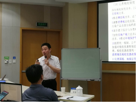 潘教授在全面梳理税改内容的基础上,对落实税收法定原则、健全地方税体系、提高直接税比重、推进营改增改革、资源税改革、个人所得税改革、房地产税改革等方面做了重点分析。