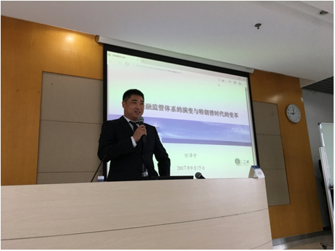 801报告厅隆重开讲,主讲人为美国芝加哥大学法学院法学博士研究生任泽宇先生,讲座主题为“美国金融监管体系的演变与特朗普时代的监管变革”。