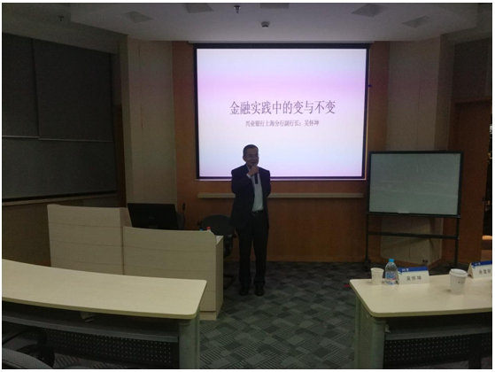 205报告厅如期举行。兴业银行上海分行副行长吴怀坤先生应邀莅临学院,给税务硕士、金融硕士讲授了以“金融实践中的变与不变”为题的实务课程。讲座由税务硕士项目主任余显财副教授主持,税务硕士研究生、金融硕士研究生及部分校外爱好者共计70余人共同聆听讲座。