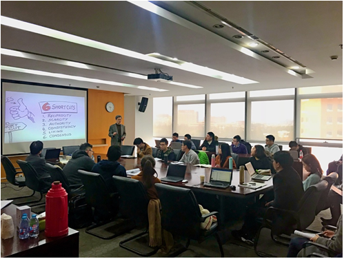 强永昌教授主持,经院及大数据学院国际商务全体同学共同参与听课。