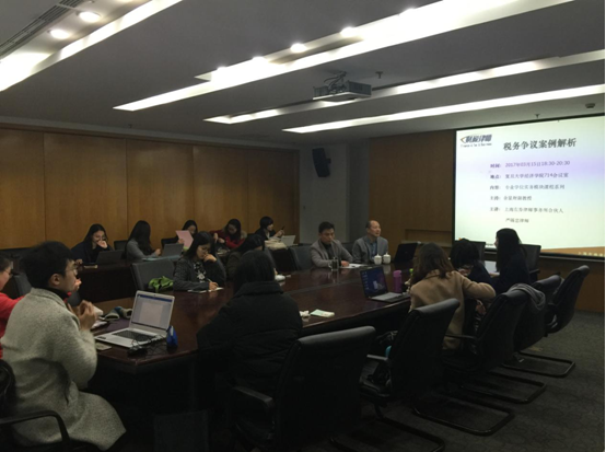 、北京大学税务硕士导师,全国律协财税法委员会副主任,中国财税法学会理事,中国税务学会学术委员。先后获得浦东新区首届十杰律师、上海市十佳青年律师等荣誉称号。严锡忠先生擅长解决投资领域中复杂的财税法律问题和财税疑难案件。在财务管理、税收筹划等广泛存在财税法律风险的领域,在投资融资、重组清算等需要娴熟财税技巧的领域,以提供“零风险”的财税管理方案、创造“财税与法律优美结合”的增值计划而享誉业界。严锡忠先生出版《税法哲学》等作品,还主编《财税律师业务》等作品。余显财副教授简单介绍严律师基本情况、专长领域、业务特色及今晚演讲重点之后,课程正式开始。严锡忠先生首先从自身经历开始,切入演讲主题,引出税收法理的重要性。