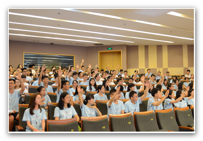 整场互动报告会中,同学们无不高举着手臂踊跃提问,积极的态度让与会嘉宾感到欣喜与振奋,报告会的气氛被一步步推向了高潮。时光飞逝,报告会在不知不觉中已接近尾声,但各位营员仍感到意犹未尽。张金清教授在报告会的最后向与会嘉宾表达了衷心的感谢,并对嘉宾们在报告会中所展现出的耐心、亲切、严谨与平静表示感动。张金清教授语重心长地寄语在座同学认真学习各位嘉宾的言谈举止与行为方式,告诫他们品性与素养在未来工作中的重要性,并祝福各位同学能在复旦度过美好的时光。互动报告会在经久不息的热烈掌声中圆满结束。