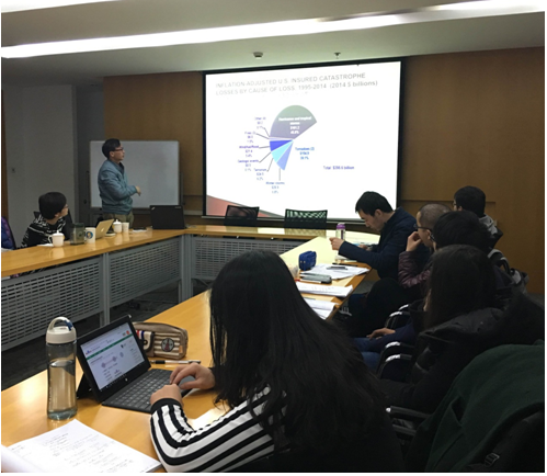 课程的最后,陈岳云老师还与同学们交流了国际保险投资、税收对保险产品影响、指数保险等问题。陈老师的见解与观点给同学们很大启发,为同学们硕士论文提供诸多有用意见,让同学们收益匪浅。