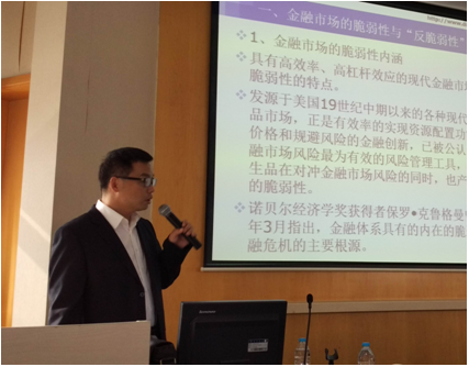 随后,申先生介绍了从工业社会到全球化的整体性风险,并引用了德国哲学家贝克关于风险社会的观点:当代的风险社会跟古典的工业阶级社会相比,原有财富分配的逻辑与风险分配的逻辑将发生历史性的扭转。从哲学角度看,杠杆幻象是“幻想的资本价值的积累”。