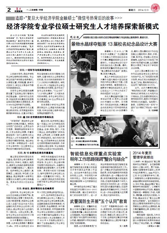 已与上海银行、复星集团、上海创投、毕马威、汇添富基金、美亚保险等十余家单位签署协议共建专业学位实践基地,更多合作项目正在洽谈当中。