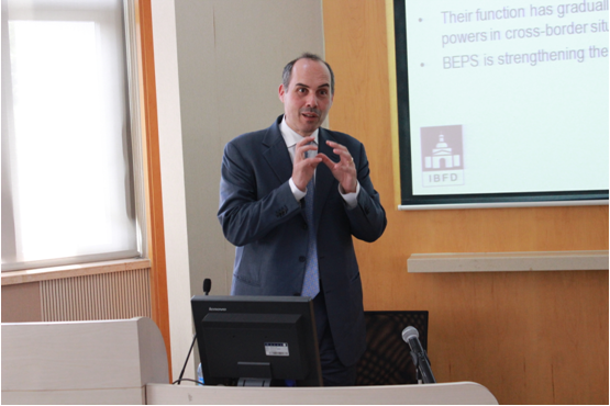 5月15日下午,国际财税文献局(IBFD)学术委员会主席Pro. Pistone一行来访学院,为税务硕士班的同学们讲授了主题为“Two Critical International Tax Issues of Developing Countries: Tax Treaties and Fiscal Transparency”的实务讲座。随行的还有来自IBFD 的De Geode 教授、马世奇研究员、李娜研究员、IBFD北京办公室吴嫣乐老师等。