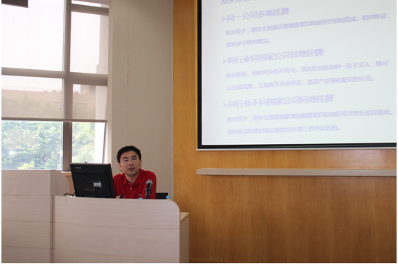 讲座开始,徐习佳老师从定量和定性两方面来展示其观点。他指出,市场是有效的,差价套利的机会越来越小,利润不足以覆盖我们的交易成本。他向同学们介绍了如果不做最经典的统计套利,如何变动来获得利润。徐习佳老师指出了企业估值跨国差异的客观存在,分别存在同一公司多地挂牌,同行业同国家公司异地挂牌,同行业不同国家公司同地挂牌这三种情况下的套利。