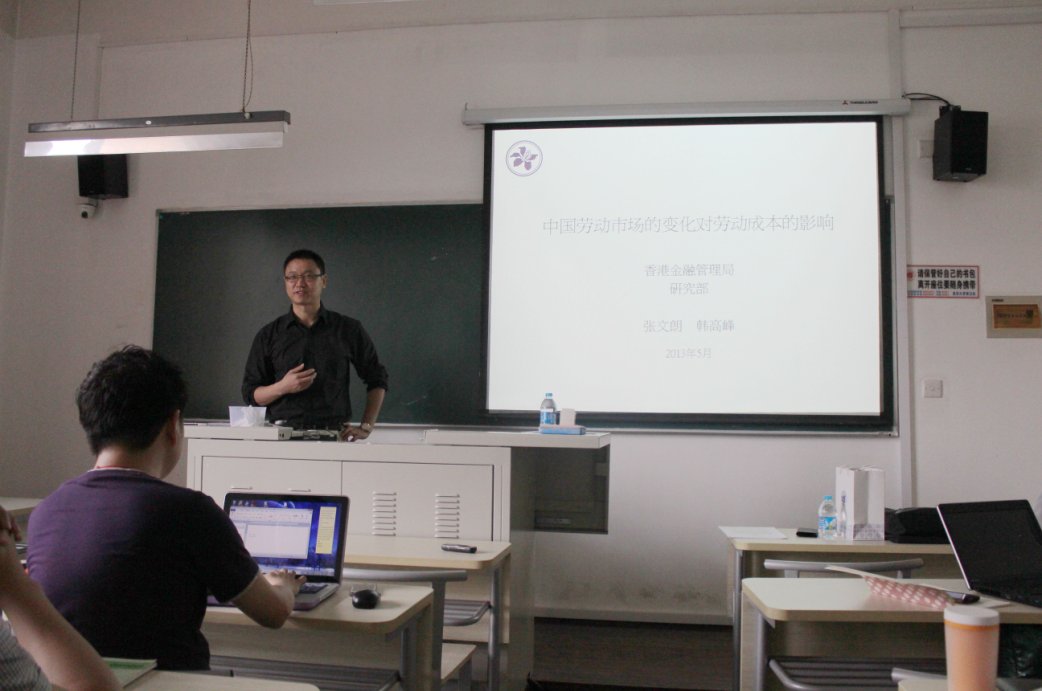 课堂上,张文朗博士围绕以下3个问题展开阐述:1、劳动市场变化(劳动力供求变化)对工资的影响有多大?2、劳动力对东部沿海地区雇工与工资产生了多大压力?3、研究结果有何政策启示?