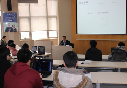 205报告厅与金融专硕的同学们一起畅谈“法与金融”,与同学们分享了自己对于法律与金融的认识,并讲解分析了躁动一时的海富公司和世恒公司的“对赌协议”之争。