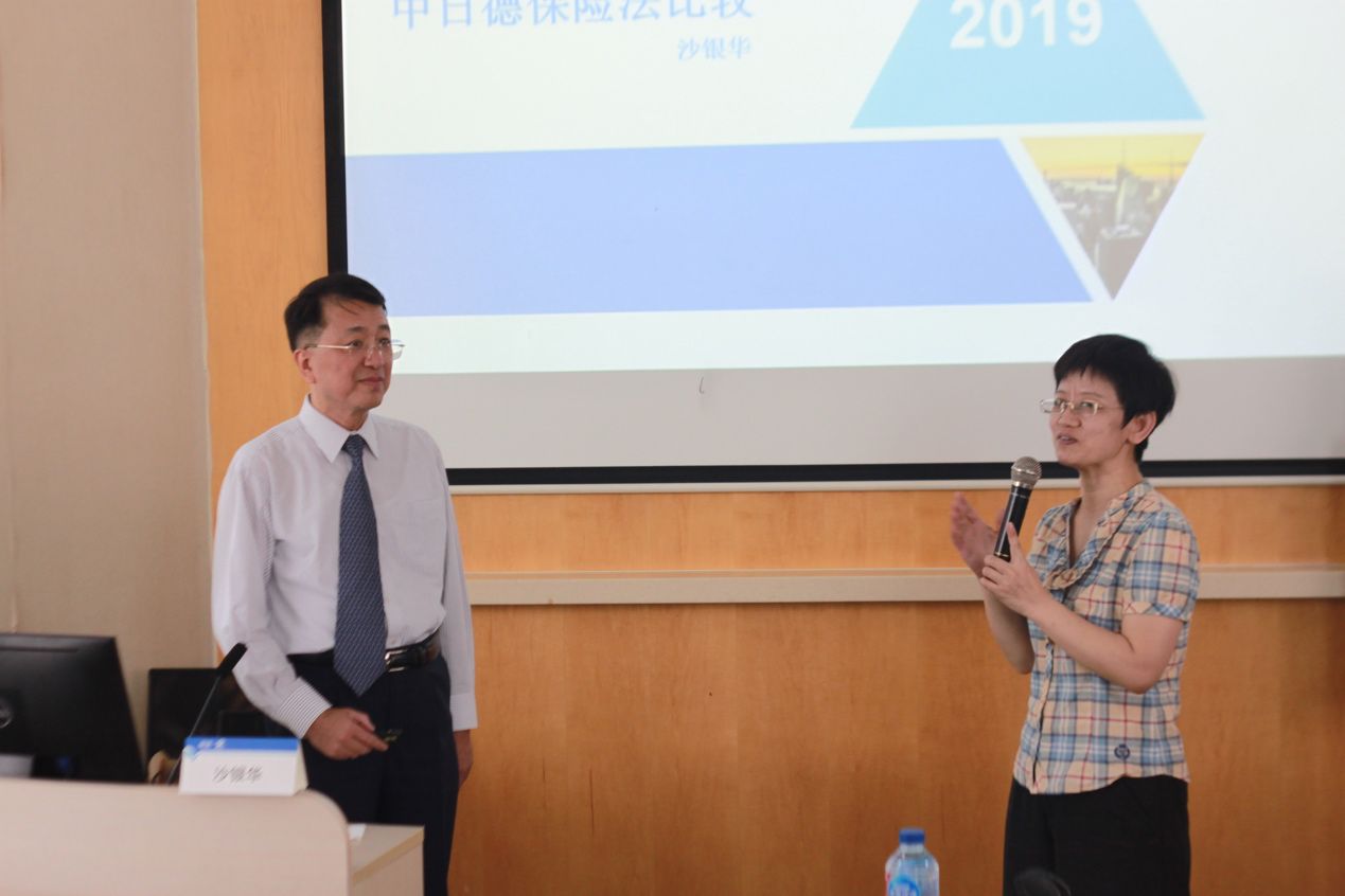 沙银华老师以介绍世界保险法的发展情况为开场,开始了本次授课。课程主题内容分为四大部分:中日德三国保险法发展的简史,三国保险立法制度的主要区别,三国保险合同法的主要区别以及对中国保险立法的若干启示。沙老师还将理论知识与社会热点相结合,提出一些有趣的问题——“相互保vs相互宝”,与同学们进行了热烈的讨论。