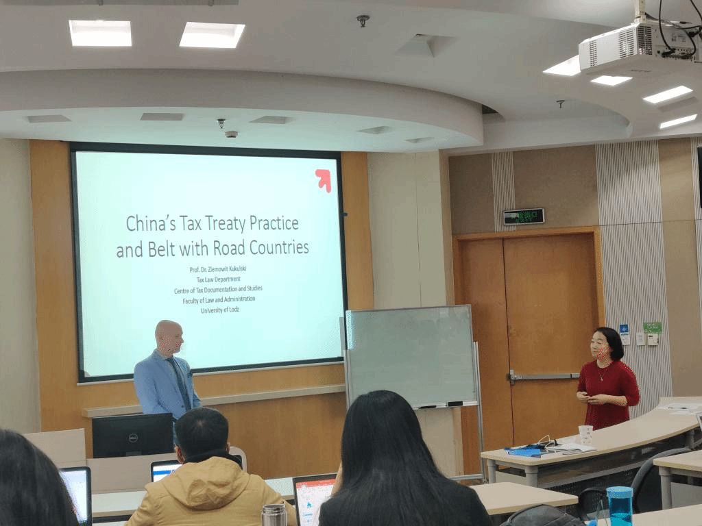 在同学们对两国税收协定体系有了整体框架后,Kukulski教授引出了本次课程的第二个重点——“一带一路”倡议。税收协定网络以及中国在“一带一路”倡议中签署税收协定的立场和态度对推动“一带一路”经济区发展有着重大意义。同时,Kukulski教授也表示“一带一路”倡议的提出会对中国的税收协定实践产生重要影响。接下来,Kukulski教授从常设机构概念设定、降低消极所得预提税、税收减免与税收饶让政策三个方面向我们介绍了中国在与“一带一路”相关国签订双边税收协定时应该持有的立场。Kukulski教授具体地指出了“一带一路”倡议下,中国的税收协定实践应该发生和正在发生的转变,这体现在税收协定下各个条款的细节规定中。此外,教授还介绍了在国际税收领域针对税收纠纷的解决方法,并以中国和波兰的双边税收协定为例对前述知识点进行了呼应和总结。最后,Kukulski教授介绍了当前国际税收领域的一个主要趋势——多边协议。2013年至今,中国已经签署了税收事项行政互助多边公约和自动交换金融账户信息的多边主管当局协议,可见中国也正在积极融入这一国际趋势。随后,Kukulski教授分别指出签署旨在防止税基侵蚀与利润转移(BEPS)的多边公约对中国和波兰两国的税收协定实践的影响,以及中国和波兰对多边公约的态度立场。在Kukulski教授介绍完后,同学们对中国当前的税收协定实践有了更加全面准确的认识。