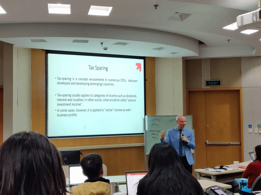 本次课程以税收协定为主题,Kukulski教授首先对该话题下必须了解的OECD范本和联合国范本进行了对比,他指出,两个范本对国际税收协定实践都产生了深远的影响。在分别阐述两个范本的相同点与不同点后,Kukulski教授指出联合国范本并非仅在发展中国家使用,事实上世界上没有一个国家是纯粹使用OECD范本或者联合国范本的。这一知识点帮助同学们走出了平常学习的误区,使同学们对两个基础性的范本有了更准确的理解。以此为基础,Kukulski教授进一步介绍了中国和波兰两国税收协定实践的历史发展阶段以及两国签订税收协定所使用的范本类型。