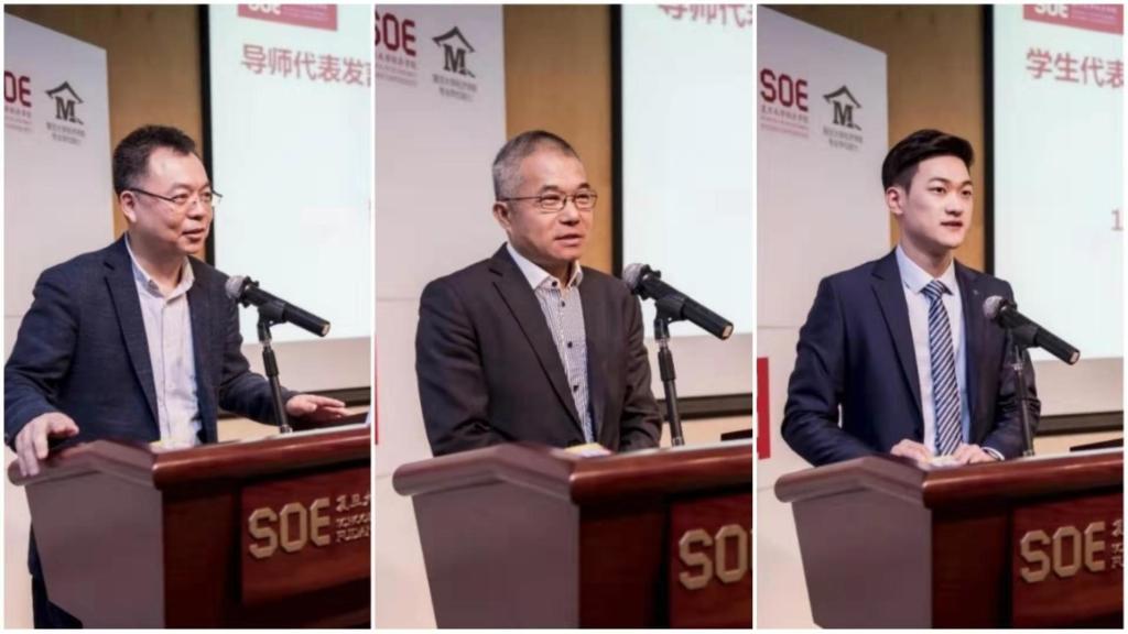 陈少瑜先生和杨玉成先生分别发言。陈少瑜先生首先对学院各位老师同学的信任与爱戴表达了感谢,并分享了五年来在复旦教学的经验。 杨玉成先生在分享中指出,浮躁不一定是贬义词,它可以演变为驱动自身发展的力量。