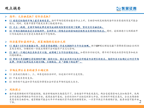 第二,美国复产复工情况不明确,还有待进一步观察。目前还无法准确判断何时能复工复产,美国政府提出复工条件之一是新增病例的大幅下降,根据相关流行病学专家的看法,美国需要新增确诊人数在1000以下时才能复工复产。市场普遍认为美国复产复工至少需要到六月中旬,陈李先生认为这给世界经济带来了很大的不确定性;
