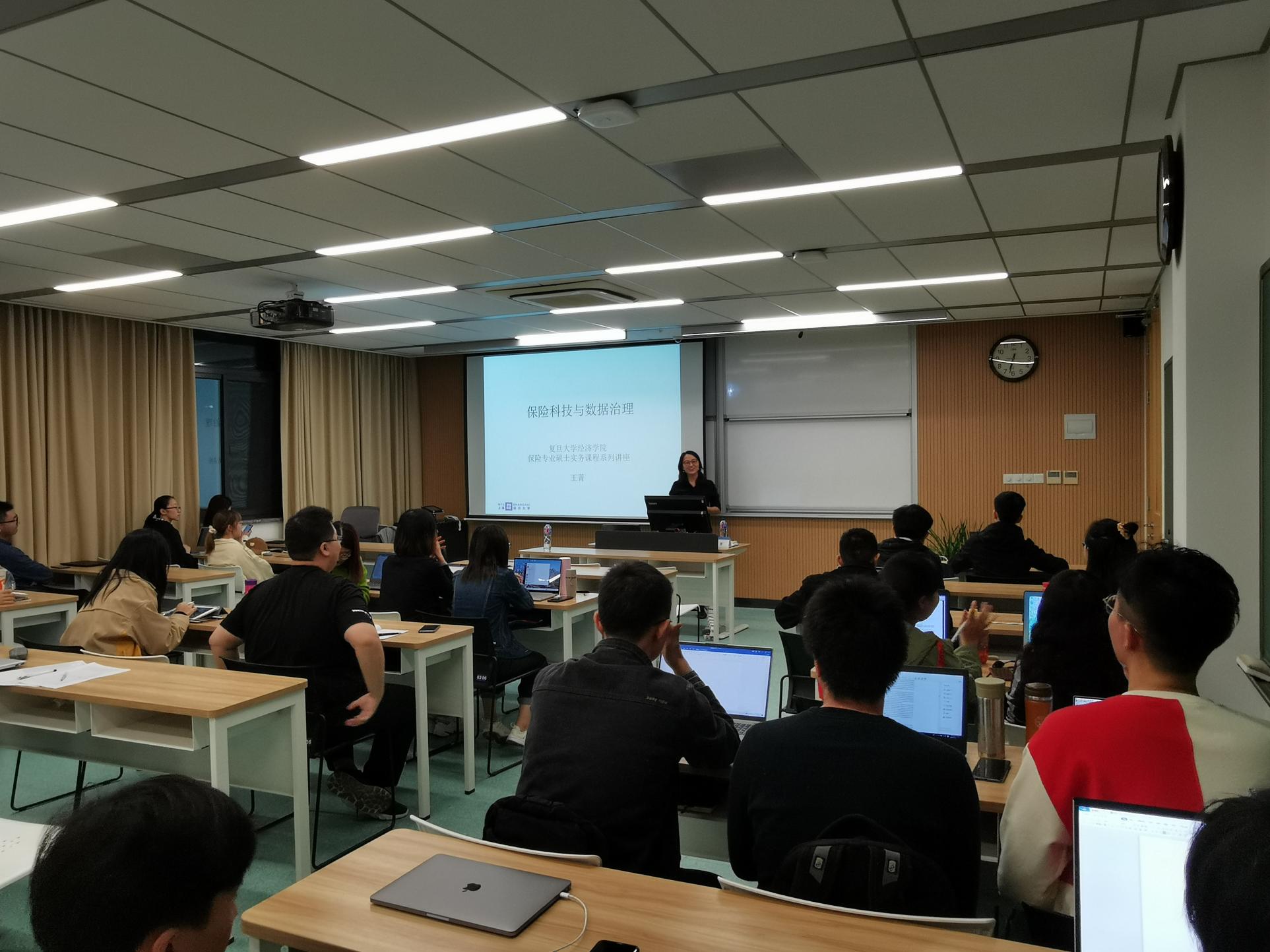 王教授对于保险科技与数据治理的交叉学科讲解,对同学们拓展认知边界,探索前沿领域具有重要启发意义。在讲授过程中,王教授注重互动式教学,积极与同学互动,以翔实的数据支持和生动的举例分析贯穿讲座的始终,同学们也在整场讲座中表现出较高的积极性和参与度。讲座最后,王教授还提出了诸多引人深思的问题,启发同学们进一步思考和探究。