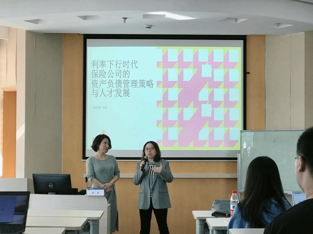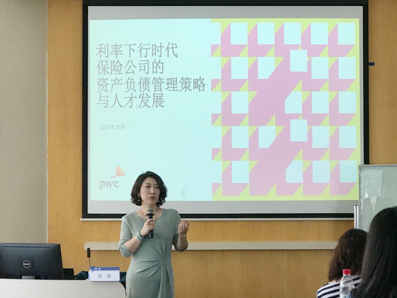 讲座尾声的互动环节,有同学就精算师是否在进入其他行业中面临较高壁垒这一问题向周女士提问。周女士表示,目前精算师的职业方向已经不仅仅局限于保险行业,咨询、投资等方向对精算师也有一定的需求,精算师转向其他职业方向已经是十分普遍的现象,因此同学们不必担心职业规划受限的问题,应该更注重个人能力的提升。还有同学提问,希望了解周女士对未来资产负债监管的走向有什么看法?周女士认为未来在资产负债方面的监管制度肯定会趋向于详细、具体,但目前中国寿险业在这一方面的主要问题是管理层的重视程度不足,需要管理层充分意识到资产负债管理的重要性才能在这一方面有根本性的改善。
