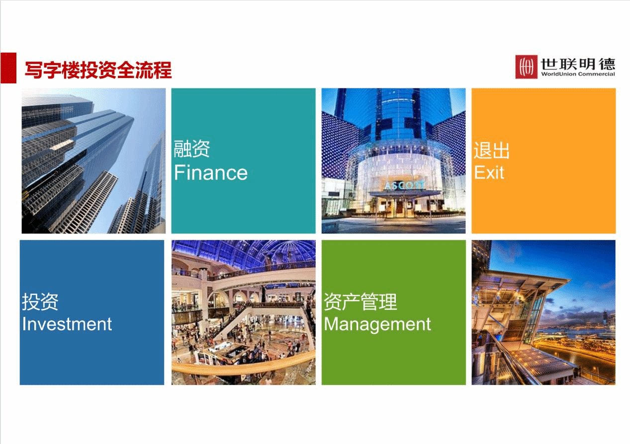 写字楼投资的全流程包括“投”、“融”、“管”、“退”四个阶段。