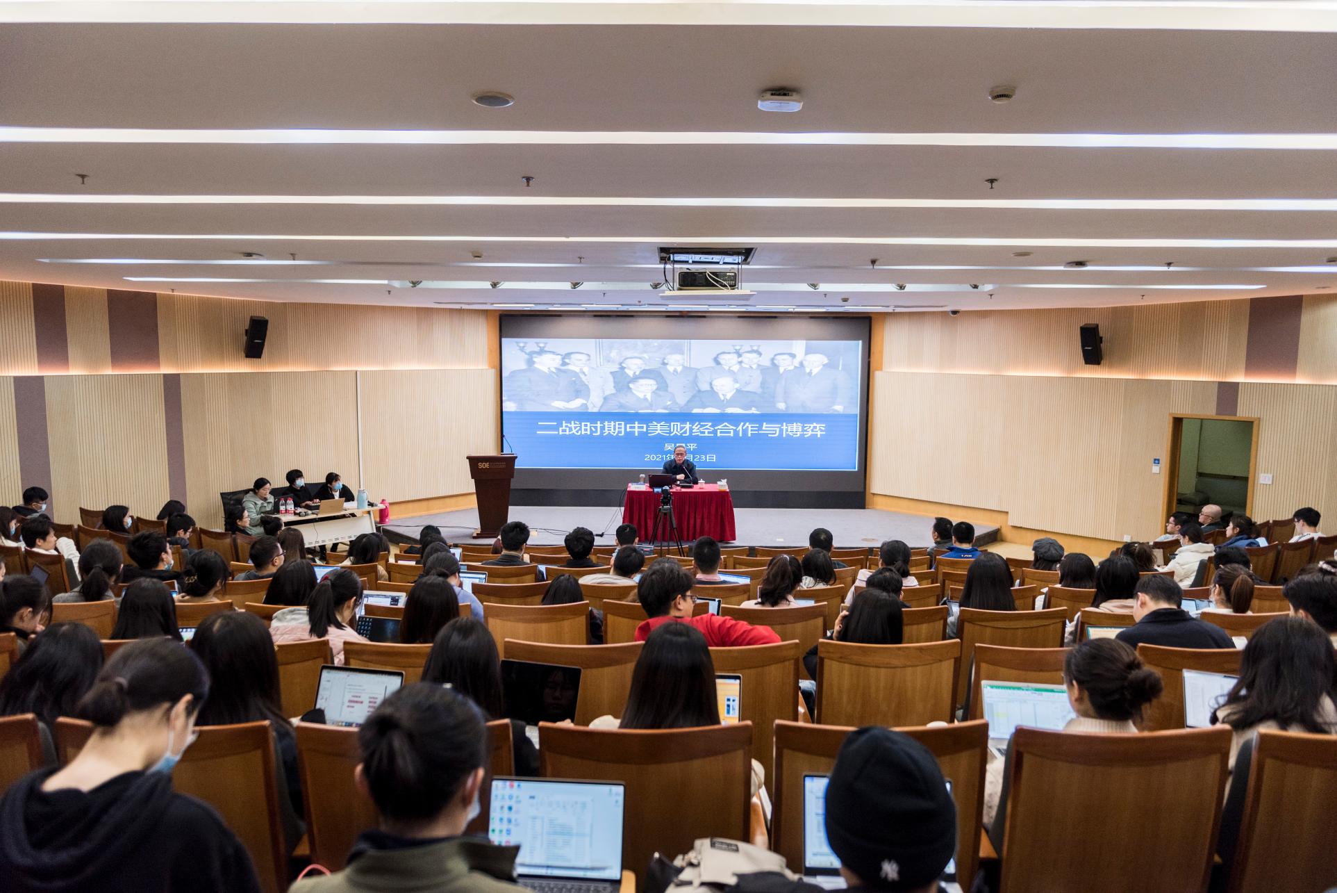 讲座伊始,吴教授以近日举行的“中美高层战略对话”为切入点,回顾了二战前中美关系的基本面、战前中美处理双边关系的特点、中日矛盾激化对美国在华利益造成的冲击、以及中美财经领域的初步合作情况。他表示,近代意义上的中美双边关系是建立在“旧条约体系”之上的,而在当时,中美在财经领域就存在着一些初步的联系与合作,例如早期精琪币制改革案、单独对华贷款、甘末尔计划、美麦借款和棉麦借款等。