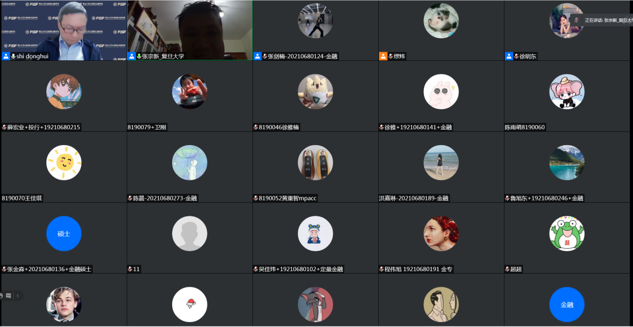 金融项目学术负责人张宗新教授主持,向全市金融硕士培养单位开放,来自上海市十余家金融硕士培养院校的200余位师生在线认真聆听,学术氛围浓厚。