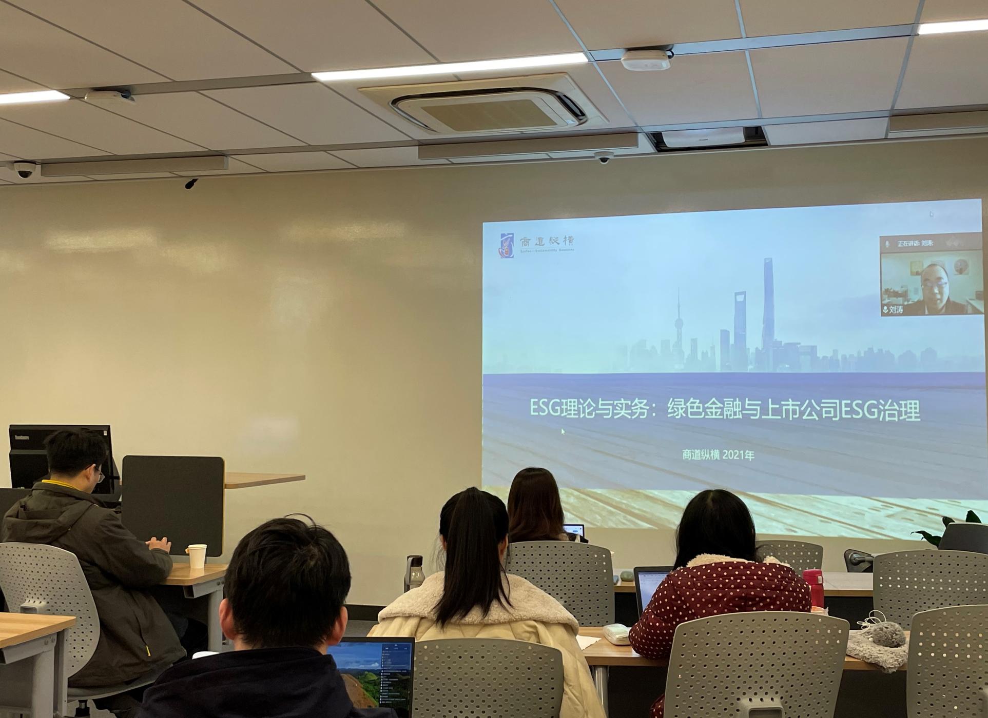 11月25日,商道纵横EGS咨询公司合伙人、副总经理刘涛先生,高级咨询顾问陈雯女士应邀来到《绿色金融与新金融》课堂,为无码流出