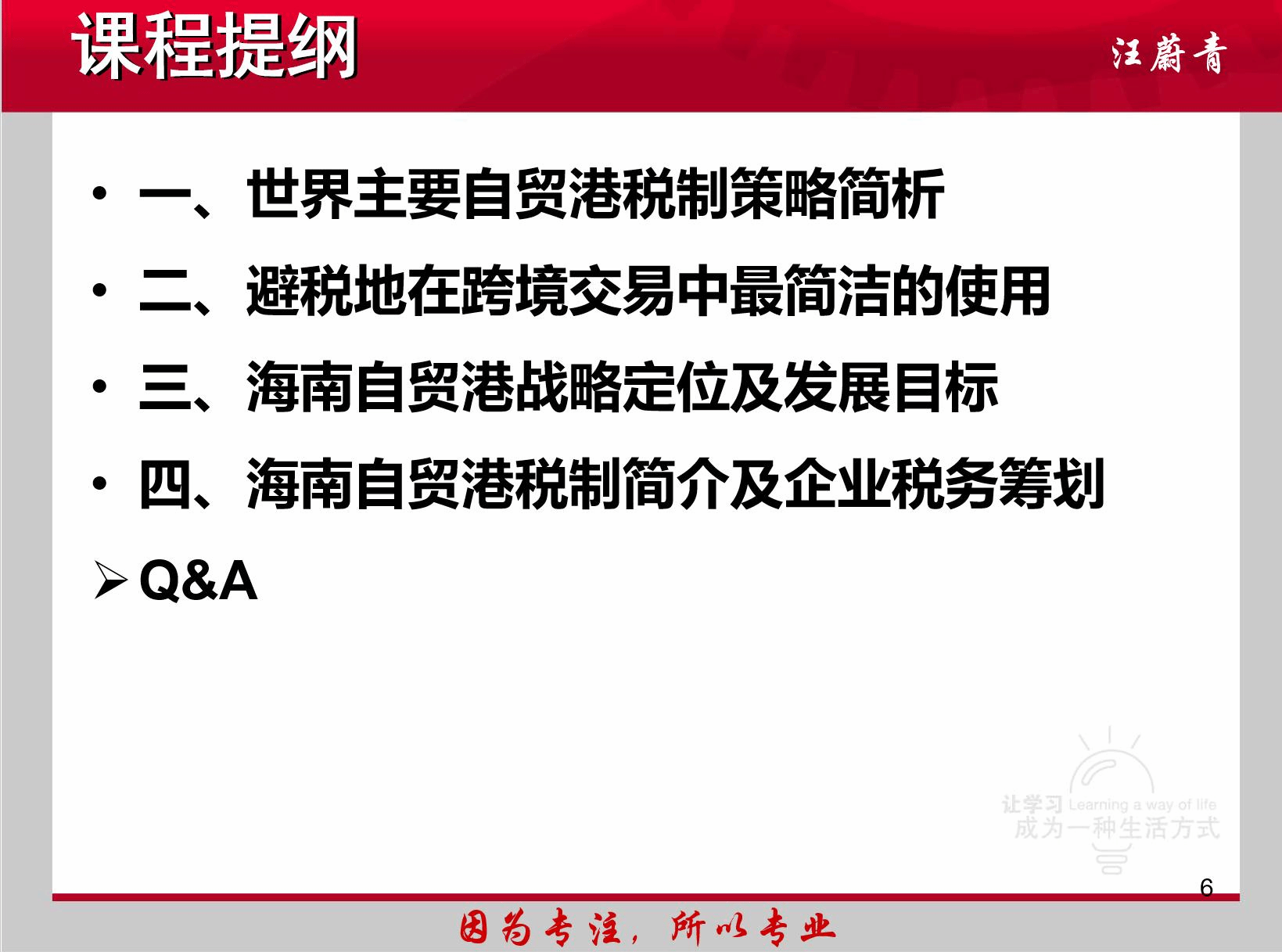 最后,汪老师系统性地论述了我国海南自贸港的税收体制,自贸港法律等等内容。
