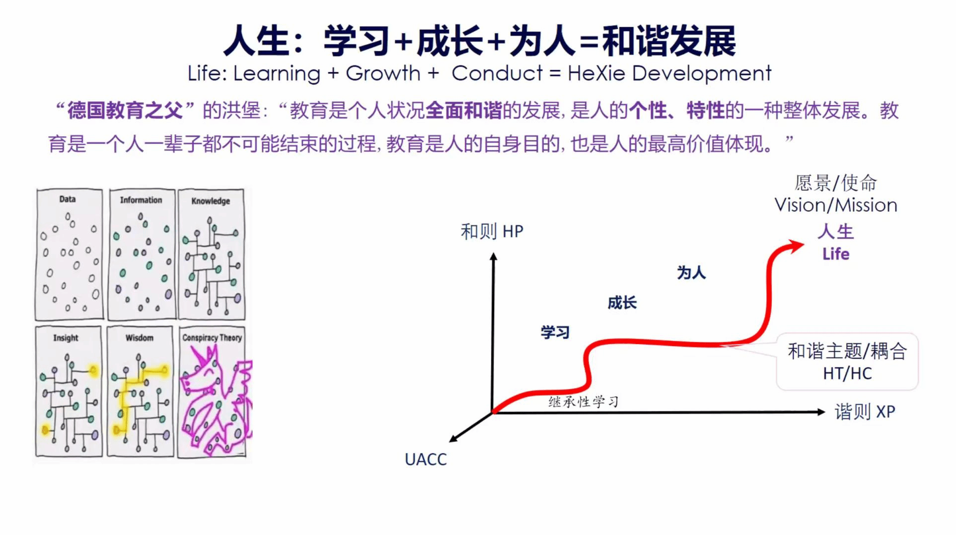 本次讲座的主要内容包括数智时代应该以怎样的心智生存,教育如何对塑造人的心智和思维境界起作用,以及当前的教育应当如何转变、重塑,才能使大家获取到真正有利于提高个人能力和精神境界的能量。