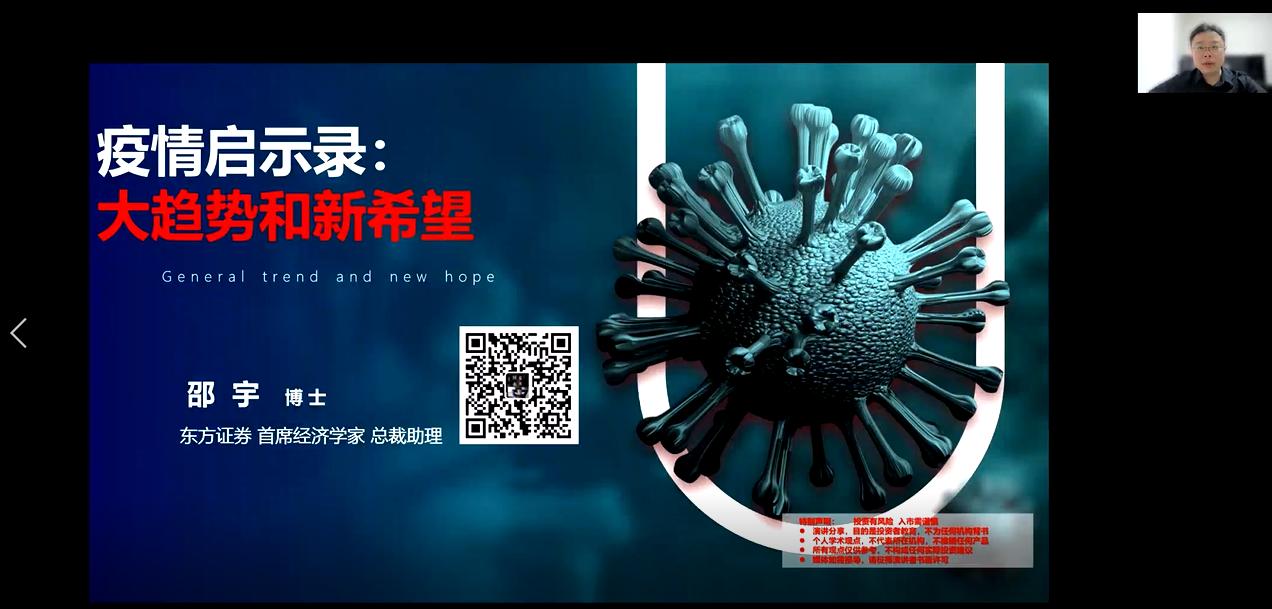 邵宇博士发表了题为《疫情启示录:大趋势和新希望》的讲座,从当下疫情角度出发,将其与西班牙流感对历史带来的巨大影响进行类比,来说明新冠疫情或将造就百年未有之大变局,以此引出全球疫情后的几个变化趋势。面临疫情带来的巨大挑战,不稳定性、不确定性并存的国际国内双向循环新发展格局,邵宇博士全方位展望了后疫情时代的中国宏观、全球宏观和投资配置,并提出多项发展建议。
