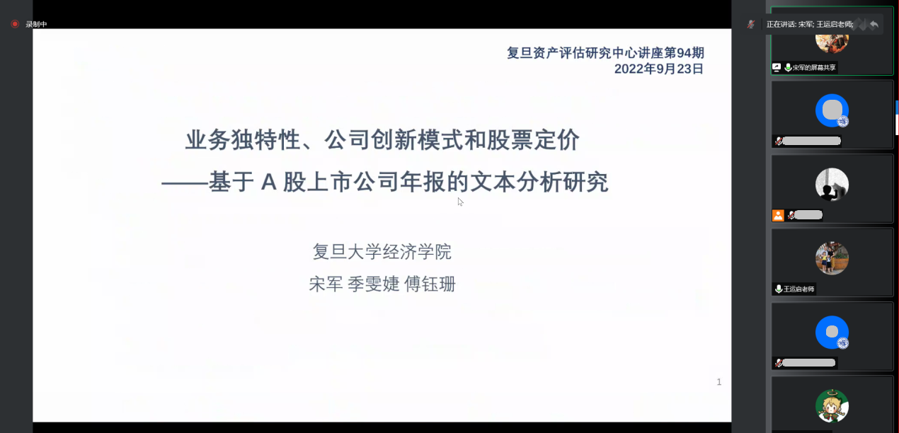 资产评估专业硕士分享了“业务独特性、公司创新模式和股票定价”研究课题。无码流出