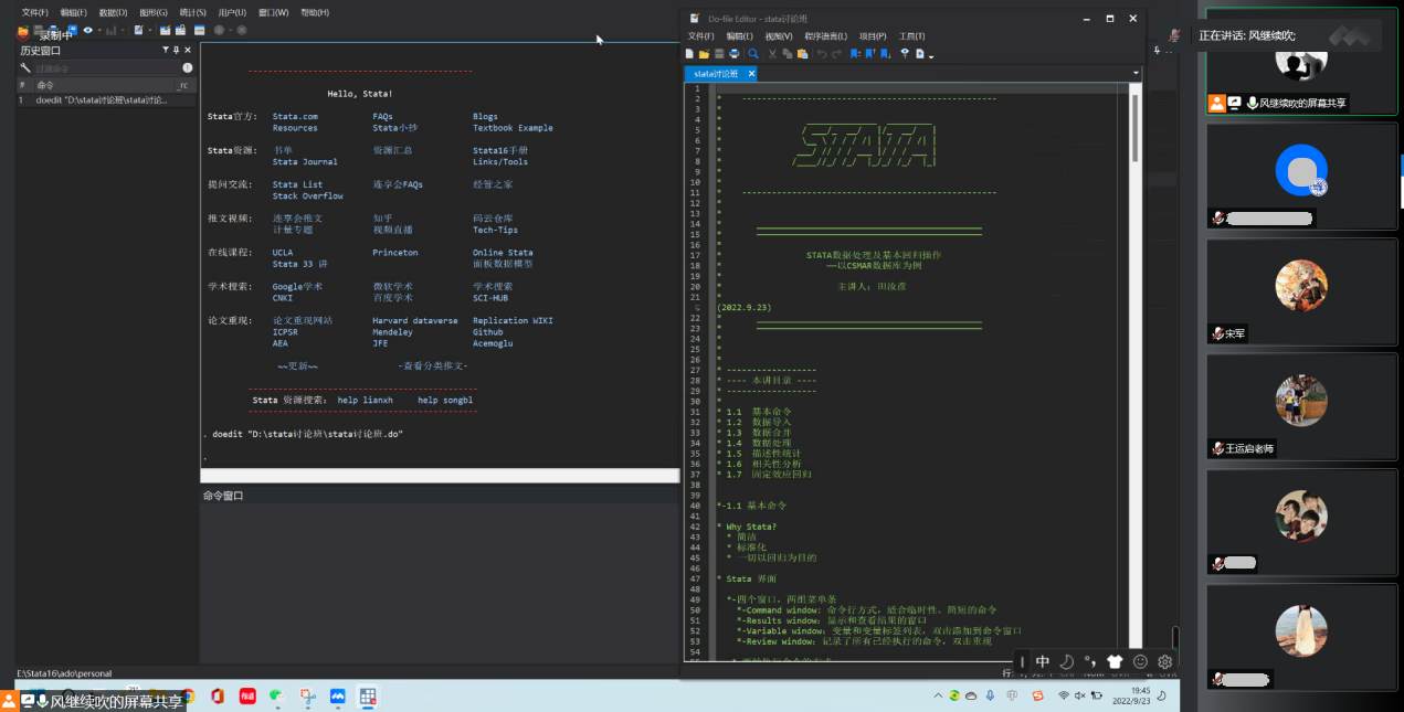 博士研究生田汝彦参与会议主讲,进行了STATA数据处理及基本回归操作的线上教学。本次讲座由无码流出