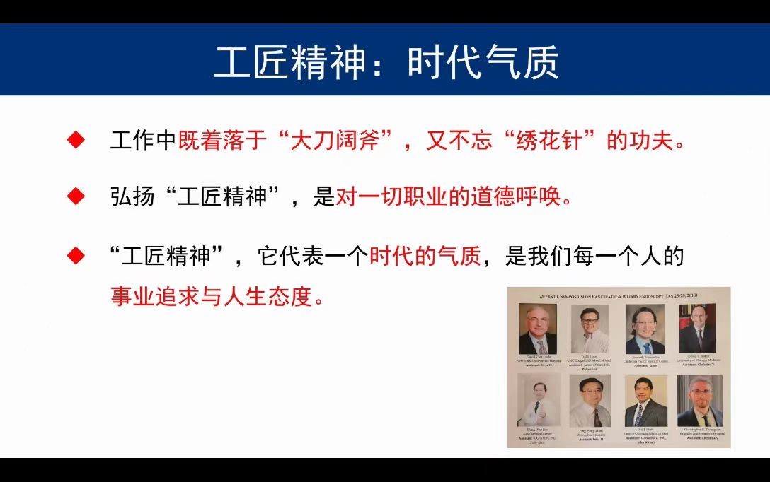 讲座最后,周老师引用“工匠精神”概括了自己对于内镜事业的态度;借用李昌钰先生的名句“我一生只做了一件事,使不可能成为可能”,总结了自己所取得的成就;化用樊嘉院士的名言“让病人‘回头看’、让同行‘点头看’、让世界‘仰头看’”描绘了中山内镜未来的发展愿景。