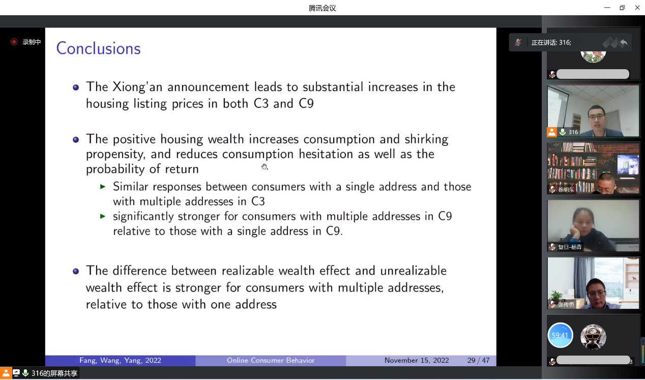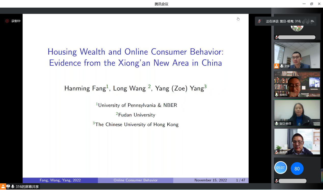 助理教授王龙老师带来了主题为“房产财富和消费行为:来自中国雄安新区的证据”的分享,本次讲座由无码流出