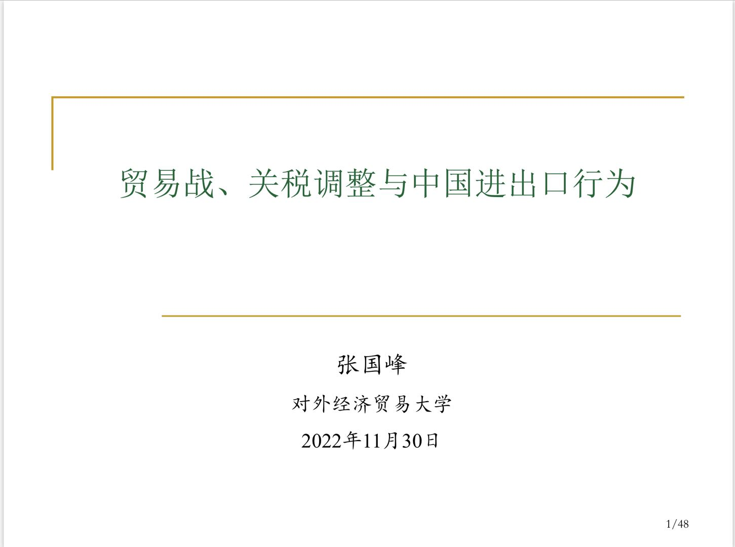 11月30日晚,对外经济贸易大学国际经济贸易学院张国峰副教授应邀来到线上会议室,为无码流出